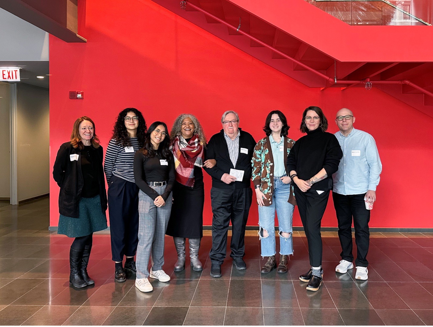 Left to Right: UIC College of Architecture, Design, and the Arts Dean Rebecca Rugg, Gelxi Ventura, Isabelle Dizon, UIC School of Design Director Anne H. Berry, Emeritus Professor Philip Burton, Ava Mullen, Beth Martini, and Morningstar Design Faculty Scholar Rafael Barontini. (Photo credit: Grace Spee)